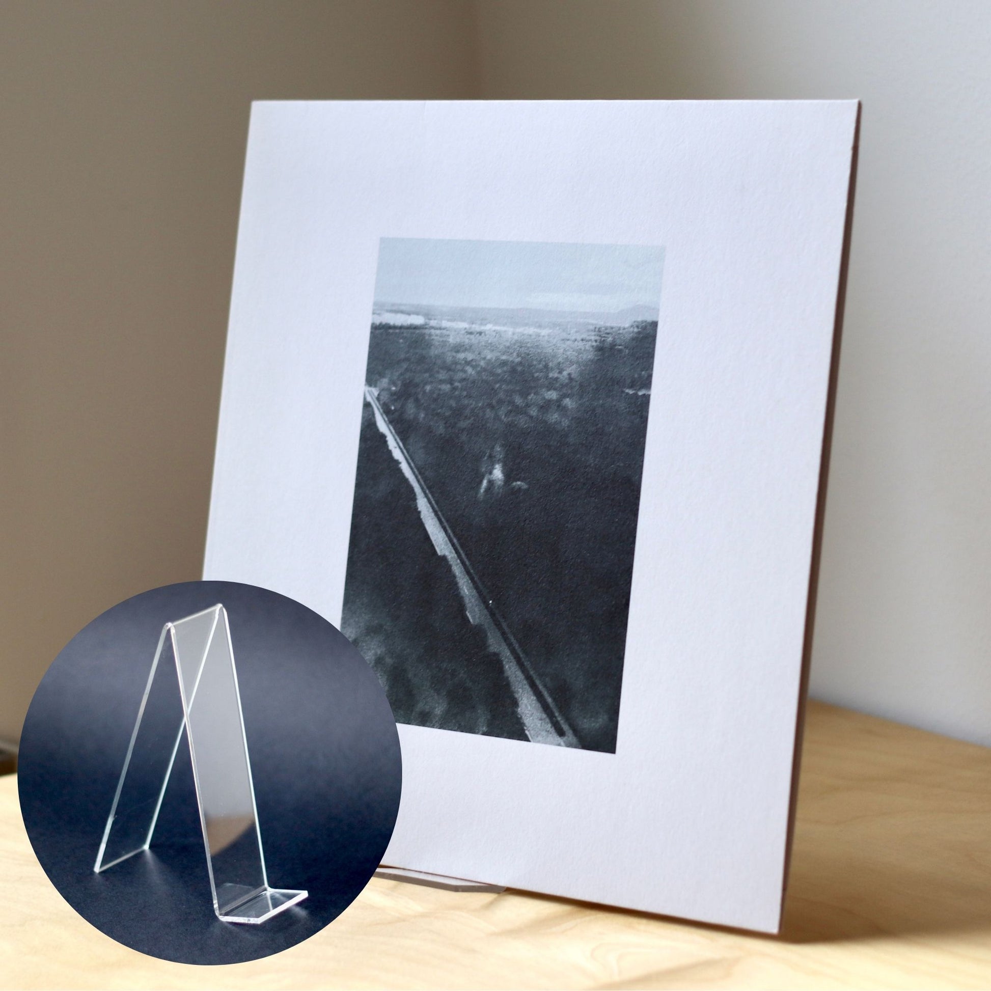 This stand was created for exactly that. A transparent acrylic stand that gives the sleeve a natural place next to the turntable while the record is playing. Discreet in form, yet clear in function. The sleeve becomes a natural presentation of the music being played, without disturbing the overall look.